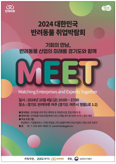 [뉴스서울] 경기도가 오는 10월 4일 ‘동물보호의 날’ 제정을 기념해 국내 최대 반려동물 복합문화공간인 반려마루 여주에서 ‘2024 대한민국 반려동물 취업박람회’를 연다. 반려동물 산업 관련 취업박람회는 이번이 국내에서는 처음이다.