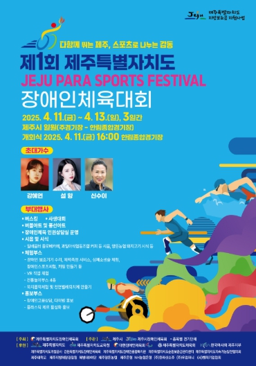 [뉴스서울] 제1회 제주특별자치도장애인체육대회가 오는 4월 11일 제주시 한림종합운동장에서 개막한다.