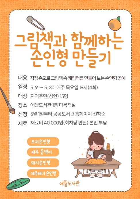 ▲ 그림책과 함께하는 손인형 만들기 안내문 |