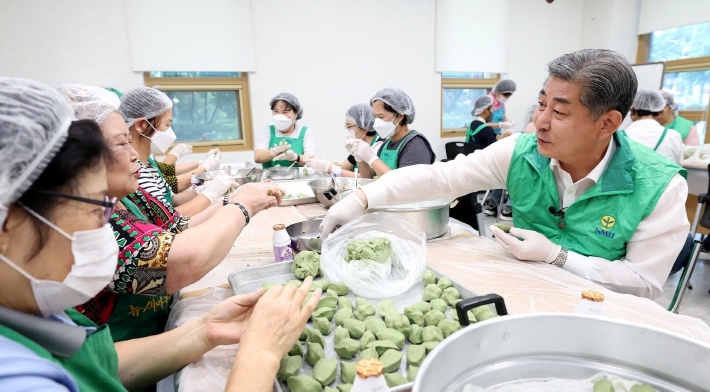 이렇게 만들어진 송편은 이후 점심시간 때 인근 차상위계층 노인들을 초청해 점심 식사와 함께 제공됐다.