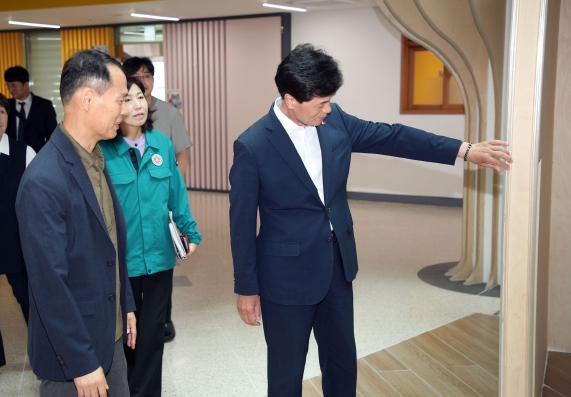 ▲ 안병구 밀양시장이 24일 밀양아리솔학교 방문해 시설을 살펴보고 있다. |