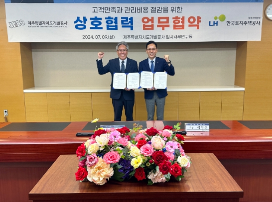 [뉴스서울] 제주개발공사는 한국토지주택공사(LH) 제주지역본부(본부장 임도식)와 지난 9일 입주민의 고객만족과 관리비용 절감을 위한 상호협력 업무협약을 체결했다고 밝혔다.