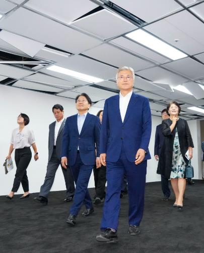 [뉴스서울] 문재인 전 대통령과 강기정 광주광역시장은 19일 오전 광주비엔날레 전시관을 찾아 ‘제15회 광주비엔날레’를 관람했다.
