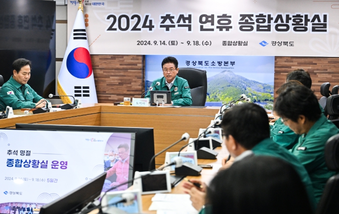 한편, 경북도는 추석 연휴 기간인 14일부터 18일까지 각종 상황 발생 시 즉시 대처할 수 있도록 10개 반(교통수송대책반, 응급의료대책반, 환경관리반, 급수관리반 등)으로 구성된 종합상황실을 운영하여 귀성객 및 도민의 안전관리와 행정지원에 신속히 대응해 나갈 방침이다.