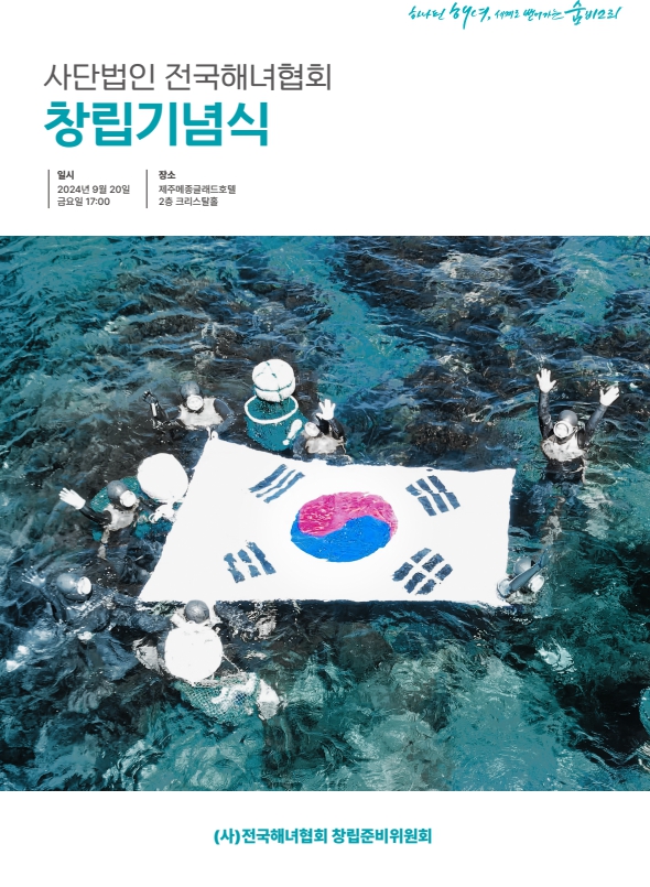 제주특별자치도와 ㈔전국해녀협회 창립 준비위원회는 20일 오후 제주시 연동 메종글래드 제주에서 ‘㈔전국해녀협회 창립총회 및 기념식’을 개최했다고 밝혔다.