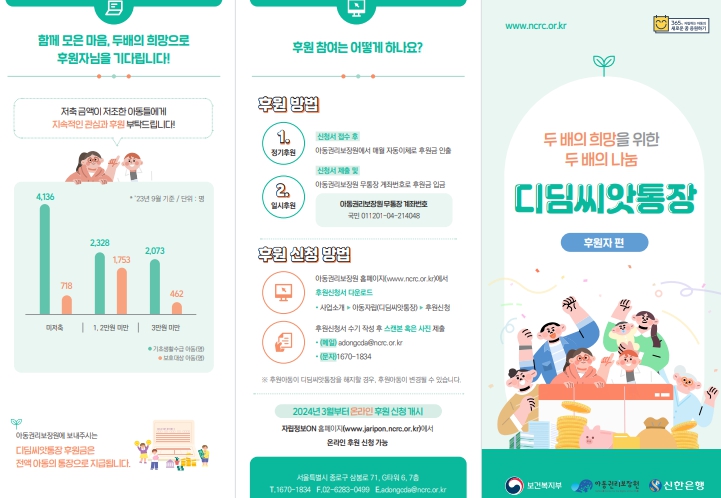 디딤씨앗통장은 만18세 미만의 기초생활수급자 가정의 아동이 보호자나 후원자의 도움을 받아 월 5만원 이내 저축을 하면 국가와 지방자치단체가 월 최대 10만원까지 지원하는 사업으로 사회진출에 필요한 자립 초기비용 마련을 돕는다.