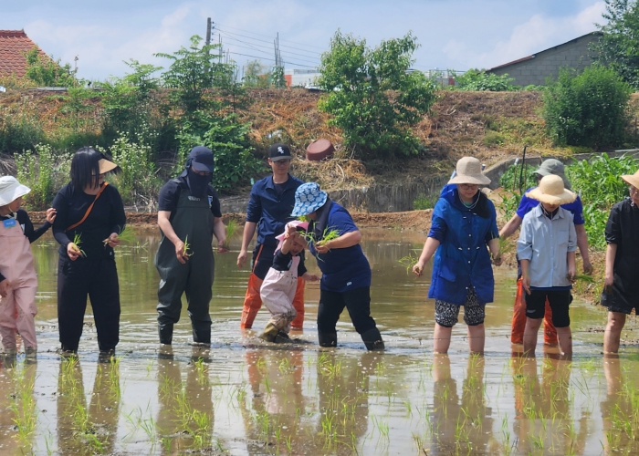 | ▲ 김포시는 지난 8일 월곶면 개곡리에 위치한 밀다리마을박물관을 거점으로 지난 8일 ‘밀다리쌀’ 모내기를 시작했다. 김포시농업기술센터에서 자광미의 종자를 확보하고, 김포문화재단에서 함께 할 시민을 모집해 40여명의 시민이 함께 자광미 모내기에 나서는 등 협업으로 첫 발을 내딛었다. 이날 모내기는 50평 가량은 자광미로, 잔여지에는 돼지찰벼를 비롯해 우리나라에서 자라는 다양한 토종벼 8종과 추청벼 등 총 12종의 벼를 심었다. |
