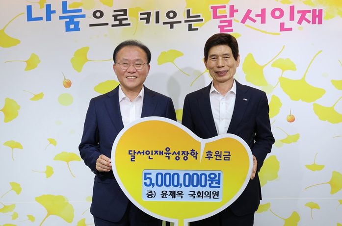 [뉴스서울] 대구 달서구가 지난 25일 윤재옥 국회의원(국민의힘, 대구 달서을)으로부터 지역 인재육성을 위해 써달라며 500만원을 (재)달서인재육성장학재단에 전달했다고 밝혔다.