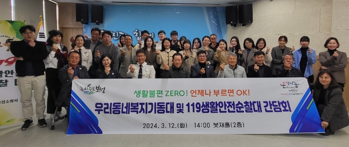 이번 간담회에서는 2024년 우리동네복지기동대·119생활안전순찰대 운영 계획 및 활동 일정 등을 공유했으며 기관 간 협업을 통한 효과적인 복지 사각지대 대응 방안에 대해 논의했다.