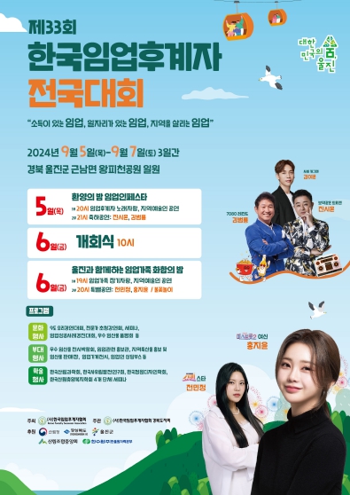 [뉴스서울] 울진군은 오는 5일부터 7일까지 3일간 왕피천공원 일원에서 제33회 한국임업후계자 전국대회를 개최한다.