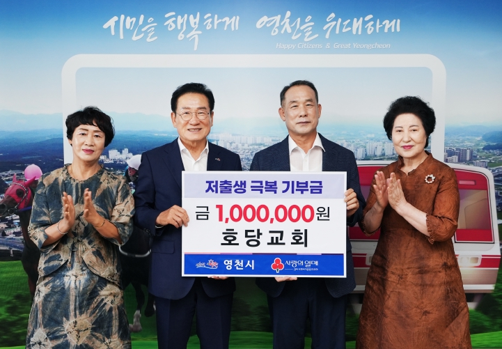 최기문 영천시장은 “저출생 극복이라는 기원을 담아 소중한 마음을 전해주신 호당교회에 깊은 감사를 전하며, 우리 시에서도 저출생 극복 대책 마련을 위해 최선을 다하겠다”고 전했다.