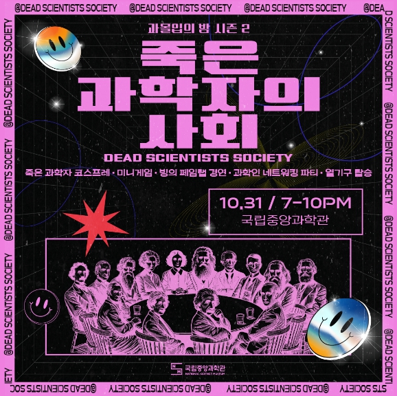 [뉴스서울] 과학기술정보통신부 국립중앙과학관은 10월 31일 오후 7시부터 10시까지‘죽은 과학자의 사회’행사를 개최한다. 현직 및 예비 과학·기술인이 ‘죽은 과학자’역할로 참여하며, 다양한 이벤트를 통해 만남과 교류의 장을 연다.
