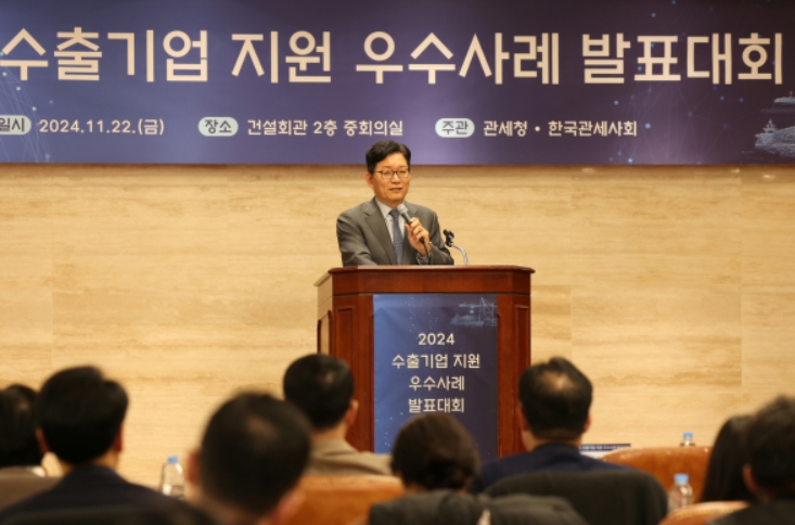 ▲ 고광효 관세청장이 22일 오후 서울 강남구 소재 건설회관에서 개최된 '2024년 수출기업 지원 우수사례 발표대회'에서 인사말을 하고 있다. |