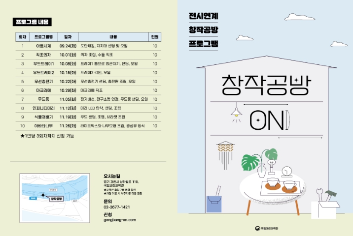 오는 9월 24일부터 11월 26일까지 국립과천과학관의 창작공방에서 전시물과 연계한 생활소품 창작 프로그램을 총 10회차 100여명의 여성 참가자들을 대상으로 운영할 계획이다.
