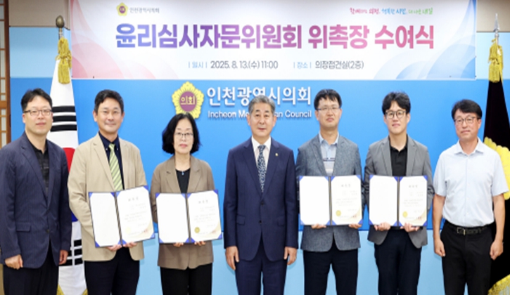 [뉴스서울] 인천광역시의회는 13일 의회 접견실에서 인천광역시의회 윤리심사자문위원회 위원 위촉장 수여식을 가졌다.