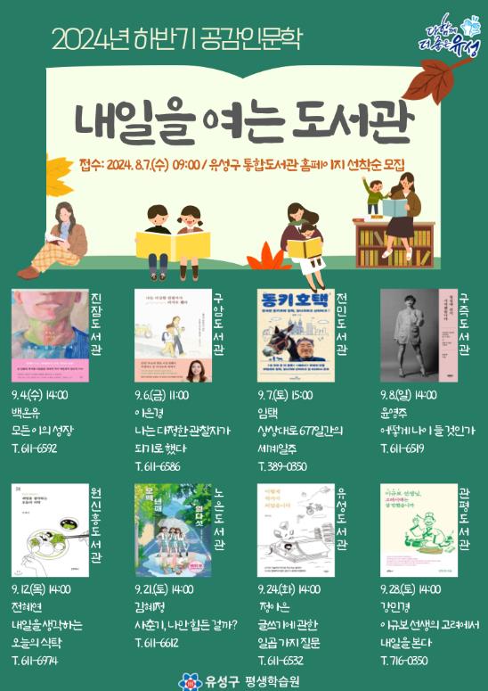 ▲ 유성구 2024년 하반기 공감인문학 “내일을 여는 도서관” 홍보물 |