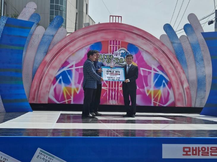 [뉴스서울] 김제전통시장 상인회와 5일장 상인회가 17일 와글와글 시장가요제가 열린 김제전통시장 특설무대에서 우수한 지역인재 양성에 써달라며 장학금 100만원을 김제사랑장학재단에 기탁했다.