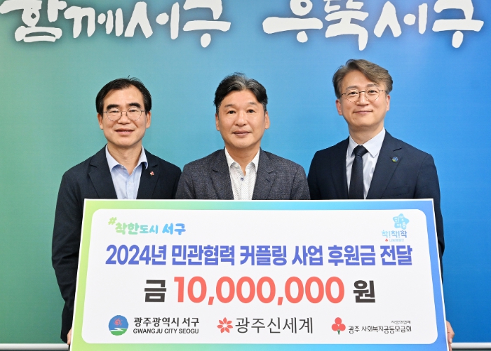 [뉴스서울] 광주광역시 서구는 4일 ㈜광주신세계(대표이사 이동훈)로부터 민관협력 커플링 사업 추진을 위한 후원금을 전달받았다.