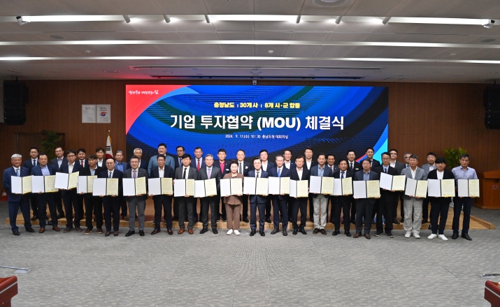 도에 따르면, 김태흠 지사는 11일 오스템임플란트 등 30개 기업, 천안시 등 8개 시군과 총 2조 1683억 원 규모의 투자협약을 체결했다.