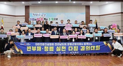 결의대회에서는 불법행위 근절, 부정·부패 척결, 반부패·청렴의지 확립을 위해 장흥군과 장흥군전문건설협회가 공동으로 노력하기로 했다.
