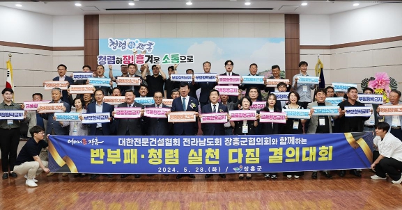 [뉴스서울] 장흥군은 28일 군민회관 대회의실에서 장흥군전문건설협회와 반부패·청렴실천 다짐 결의대회를 개최했다고 밝혔다.