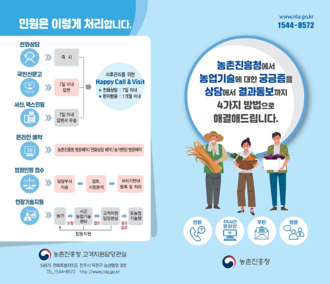 ▲ 농촌진흥청 고객지원담당관실 이용 방법 |