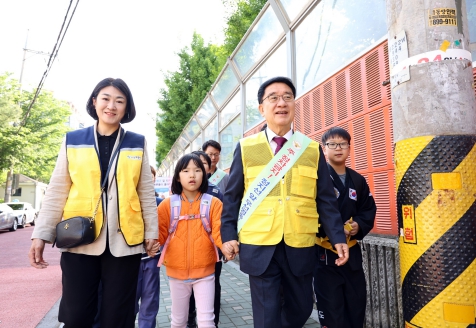 이어 문 구청장은 정진학교까지 도보로 이동하며 횡단보도 이전, 교통안전알리미, 스마트폴, 무인 단속 카메라, 버스정보안내단말기(BIT) 양면 교체 등 안전시설 설치 현황을 직접 확인하고, 어린이들이 매일 지나다니는 주변 보행환경을 점검했다.