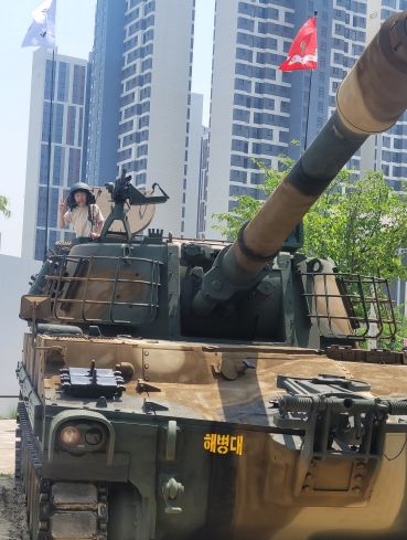 | ▲ 해병2사단에서 운용 중인 K1E1 전차에 탑승한 어린이 |