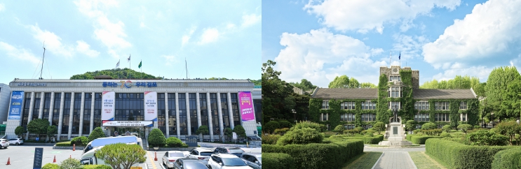 | ▲ 김포시 전경과 연세대 언더우드관 전경 |