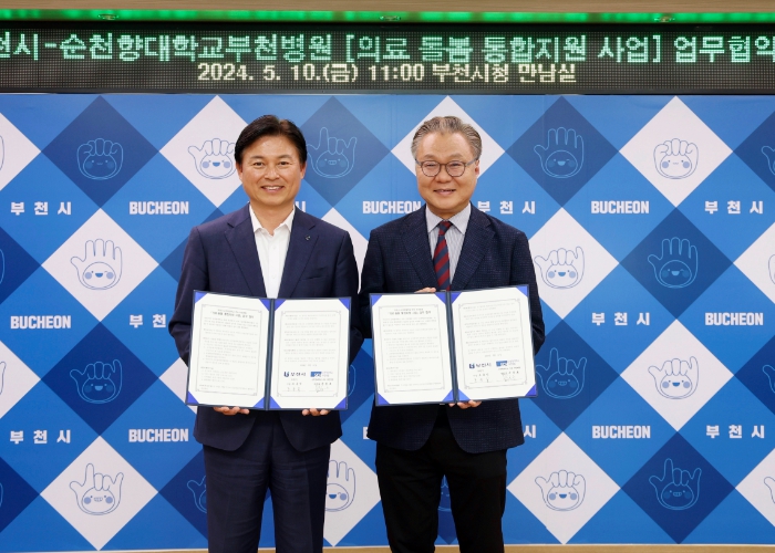 [뉴스서울] 부천시와 순천향대학교 부천병원은 5월 10일 ‘의료·돌봄 통합지원 사업’ 업무 협약을 체결하고 의료 취약계층 의료비 지원 및 퇴원환자 통합돌봄 사업추진에 협력하기로 했다.