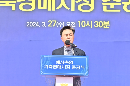 김태흠 지사는 27일 예산군 오가면에서 열린 ‘예산축협 가축경매시장 준공식’에 참석해 경매시장 확장 이전을 축하하고 한우산업 발전을 위한 지원을 약속했다.