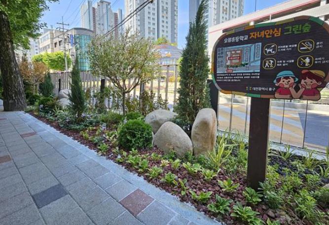 [뉴스서울] 대전 중구는 오류초등학교 앞 어린이보호구역 내에 1억 원을 투입해‘자녀안심 그린숲’을 조성 완료했다고 17일 밝혔다.