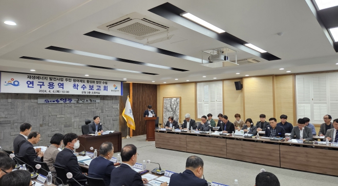 [뉴스서울] 영광군은 지난 4일 부군수, 군의원, 실과소장, 관련 읍면장, 수협 등 관계자가 참석한 가운데 재생에너지 발전사업 주민 참여제도 활성화 방안 수립 연구용역 착수보고회를 실시했다고 밝혔다.