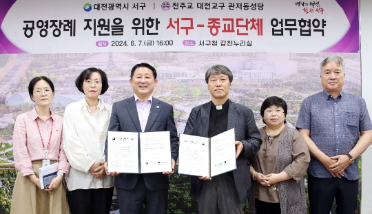 [뉴스서울] 대전 서구는 지난 7일 구청 갑천누리실에서 천주교 대전교구 관저동성당(주임신부 박찬인 마태오)과 무연고 사망자에 대한 추모 의식 지원을 위한 협약을 체결했다.