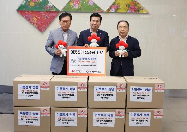 [뉴스서울] 한미동맹협의회 대구지부 회원들은 11일 대구 중구청을 방문해 이웃돕기 성품으로 아동용티셔츠 및 마스크 2,200만원 상당을 기탁했다.