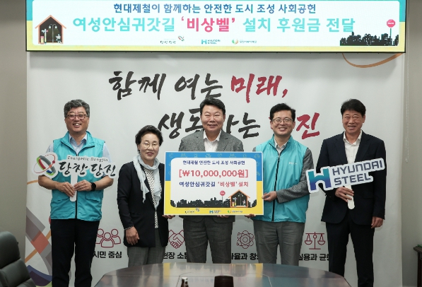 이번 현대제철(주)이 후원한 1,000만 원은 읍면동 수요 조사와 민관·경합동 모니터링을 통해 선정된 장소에 비상벨, 로고젝트 등의 시설물을 설치하게 된다.