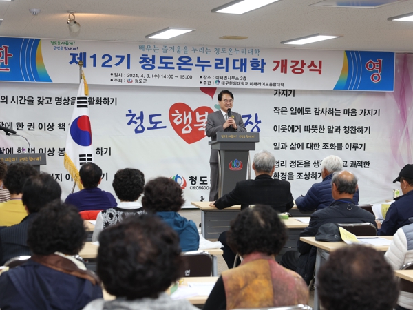[뉴스서울] 청도군은 지난 3일 이서면사무소 회의실에서 대구한의대학교가 위탁 운영하는 제12기 청도온누리대학 개강식을 가졌다.