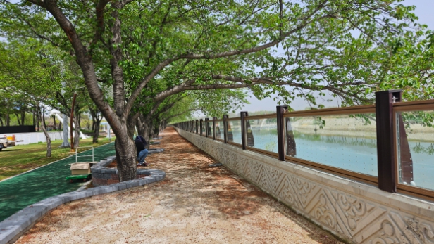 군은 2020년 8월 홍수 피해 이후 지구단위종합복구사업을 추진해 서시천 제방을 높여 보강하고, 제방 둑길을 활용해 맨발길(L=1.0Km, B=2.0m)을 조성했다.
