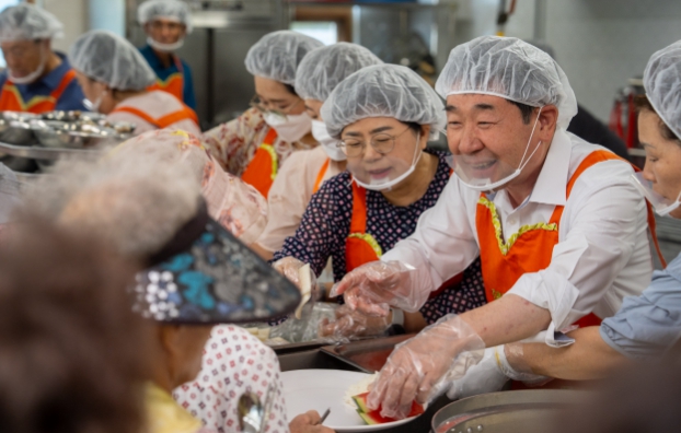[뉴스서울] 이재영 증평군수가 초복을 맞아 15일 노인복지관에서 지역 내 어르신들을 위한 배식 봉사활동을 펼쳤다.