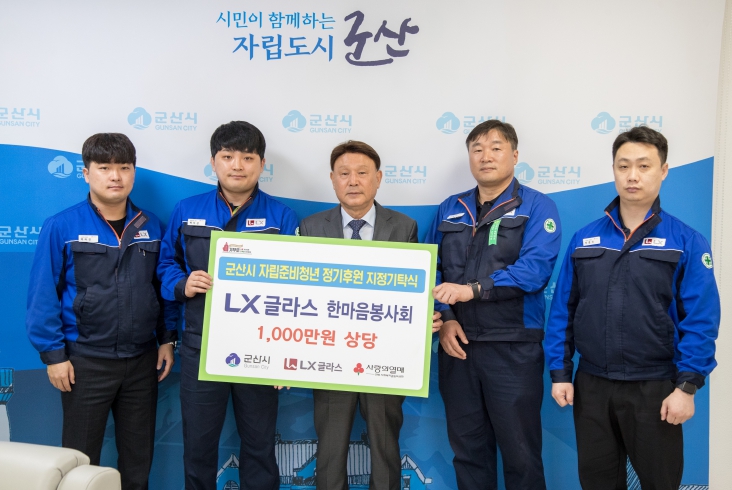 [뉴스서울] LX글라스 군산공장 한마음봉사회(회장 백두산)는 3일 군산시와 자립준비 청년의 안정적인 자립을 위한 정기후원 기탁식을 가졌다.