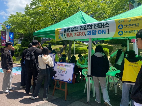 [뉴스서울] 천안시중독관리통합지원센터는 8일 백석대학교, 백석문화대학교 학생 및 교원을 대상을 시작으로 관내 10교 대학과 협력해 ‘4대 중독 폐해 예방 캠페인’을 추진했다.