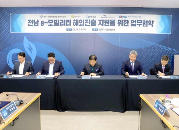 [뉴스서울] 영광군은 9일, 15시에 영광 지식산업센터에서 광주·전남지방중소벤처기업청, 전라남도, 영광군, 한국자동차연구원 전남본부, 한국스마트이모빌리티협회 등 5개 기관이 전남 e-모빌리티 해외진출 지원을 위한 업무협약을 체결했다고 밝혔다.