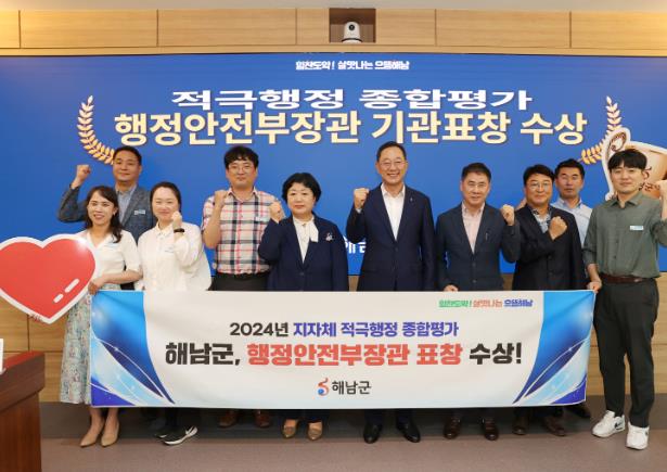 [뉴스서울] 해남군이 행정안전부 주관 2024년 지자체 적극행정 종합평가에서 우수기관으로 선정돼 행정안전부장관 기관표창을 수여했다.