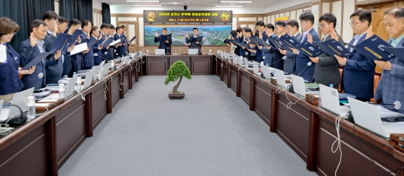 합천군 간부공무원의 솔선수범 참여로 개최된 이번 청렴결의대회를 통해 합천군 청렴 문화 조성을 위한 결연한 의지가 엿보인다.
