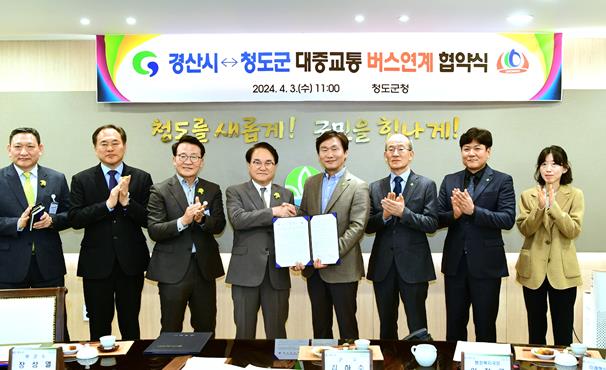 조현일 경산시장은 “생활권이 인접한 경산-청도 간 편리한 통행과 활발한 교류를 통해 상생발전은 물론 대중교통 서비스 향상 등 시민들에게 더욱 질 높은 교통서비스 제공을 위해 함께 노력하겠다”고 했다.