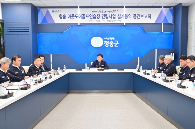 [뉴스서울] 청송군은 15일 군청 미래도약실에서 '청송 아웃도어골프연습장건립사업 설계용역 중간보고회'를 가졌다. 이번 보고회에는 군수, 부군수, 실·과장 및 사업관계자 등이 참석하여 청송 아웃도어골프연습장 건립을 위한 다양한 의견을 나눴다.