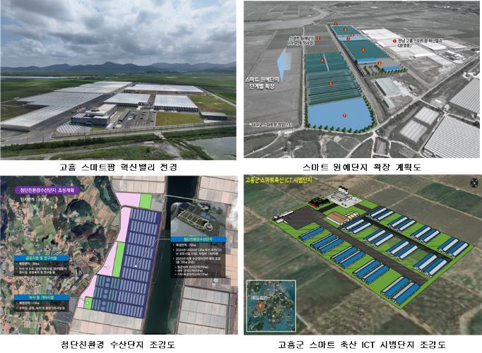 고흥군은 이러한 스마트팜의 장점을 농업 분야뿐만 아니라 축산과 수산 분야에도 접목하여, 고흥군만의 대규모 스마트 농수축산 단지를 완성하는 로드맵을 수립하고 의욕적으로 추진하고 있다.