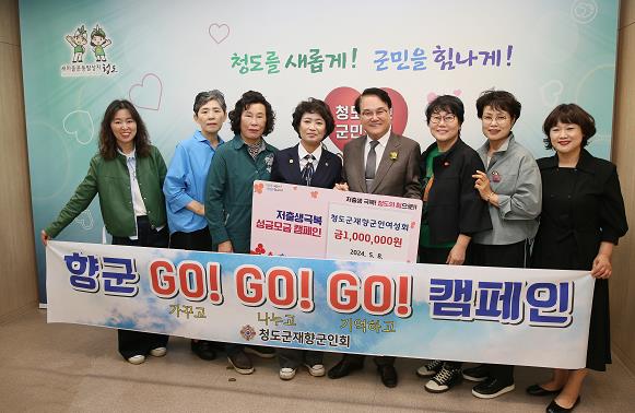 [뉴스서울] 청도군은 지난 8일 청도군재향군인여성회에서 지역사회에 공헌하고 시민들과 함께하는 ‘가꾸고, 나누고, 기억하는’봉사활동인‘향군 GO! GO! GO!’캠페인의 일환으로 국가적 과제인 저출생 극복에 기여하고자 성금 100만 원을 기탁했다고 밝혔다.