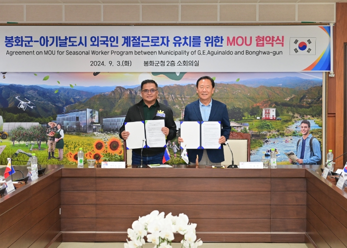 이에 데니스 글린 아기날도 시장은 “초청해주신 봉화군수님께 먼저 감사의 말씀을 드리며, 우수한 근로자 선발 및 계절근로자 송출과 관련된 절차 등을 적극적으로 지원해 이번 방문을 통한 양 지자체 간의 신뢰를 더욱 견고히 하는 데 최선을 다하겠다.”라고 화답했다.