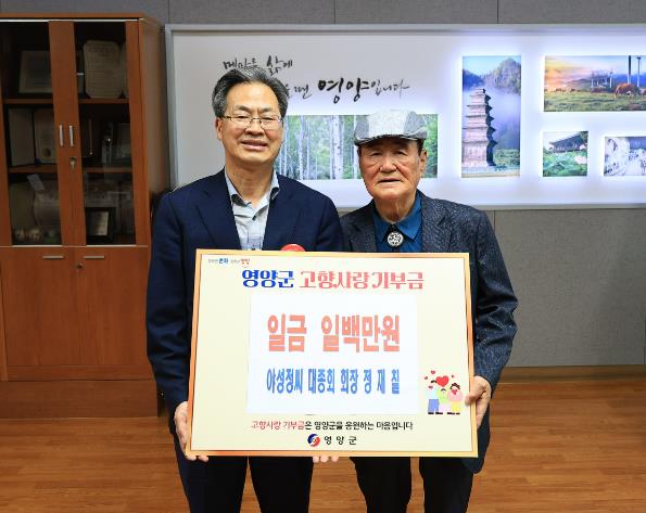 ▲ 영양군 야성정씨 대종회 정재칠 회장 100만원 기탁 |